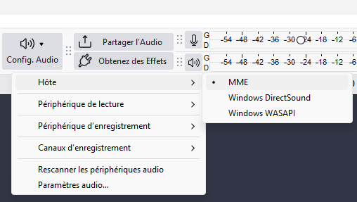 Une fois le casque branché et Audacity ouvert, cliquer sur "Config Audio".