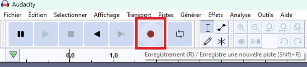 Dans la barre de menu, cliquer sur le bouton rouge pour débuter