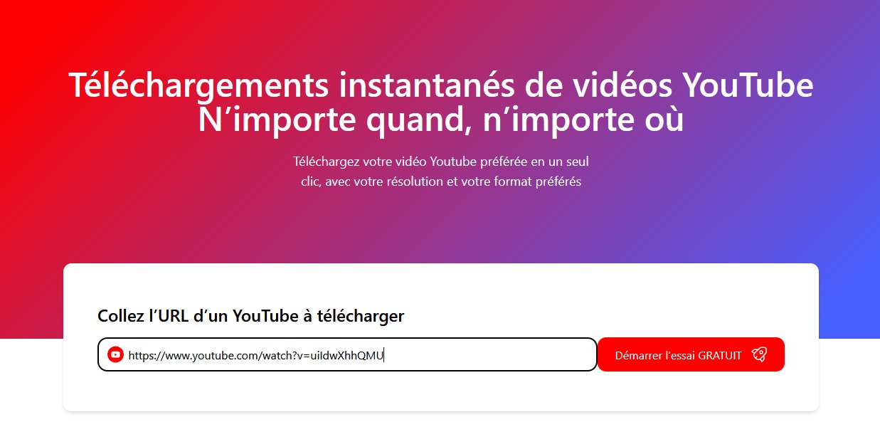 Coller l'URL de la vidéo You Tube dans le champ et de cliquer sur "Démarrer l'essai GRATUIT".