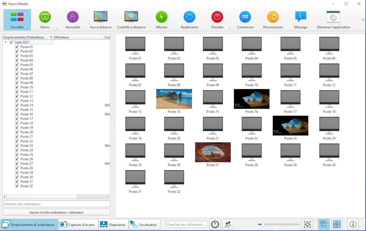 Dans les salles multimédia et au CDI, vous trouverez le logicel Veyon. Il permet de surveiller à distance les PC des élèves. Il permet égelement d'en prendre le contrôle.