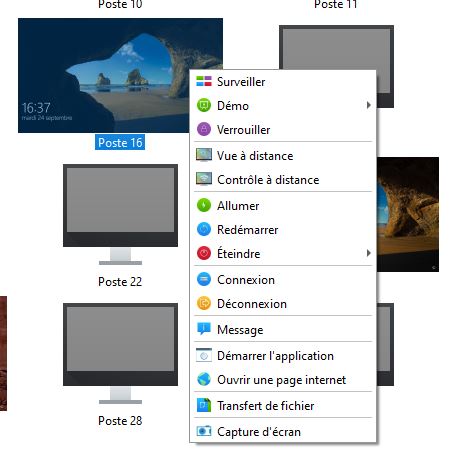 En sélectionnant un PC et en faisant un clic droit dessus, différentes opérations sont possibles :